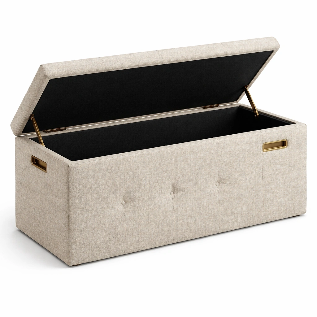 Banco con almacenamiento de tela beige con tapa 120x45x45 cm